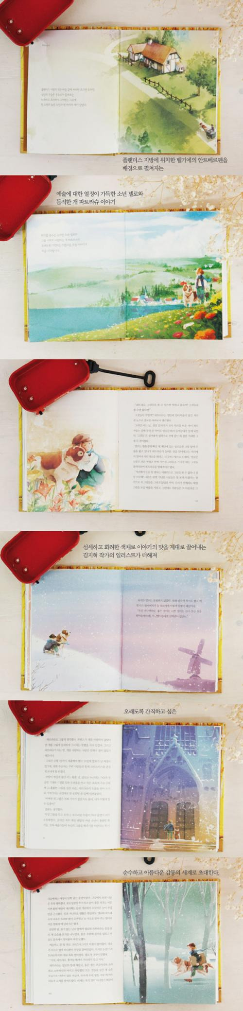 작가가 어린 시절 아버지에게 들었던 플랜더스 지방의 구전 이야기에서 영감을 얻어 쓴 이 책은 19세기 가장 인상적인 청소년 문학으로 손꼽히는 고전이다.꼭 책을 읽지 않았더라도, 1970년대에 일본에서 애니메이션으로 제작된 이후 한국에 여러 번 소개된 이 작품을 기억하는 독자들이 많을 것이다. 넬로와 파트라슈의 아름다운 우정은 어린 시절 느꼈던 감동과 향수를 불러일으킨다. 또, 섬세하고 화려한 색채로 이야기의 맛을 제대로 끌어내는 김지혁 작가의 일러스트가 더해져 오래도록 간직하고 싶은 순수하고 아름다운 감동의 세계로 초대할 것이다.